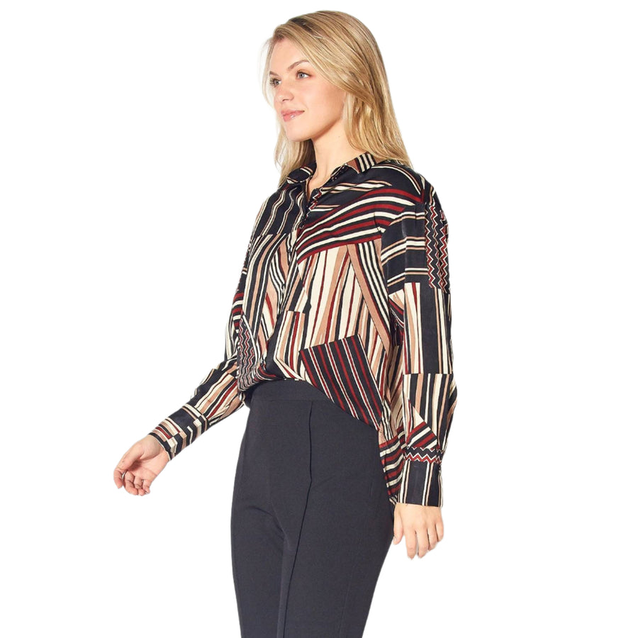 Zoom Pleione Women's Multi Stripe Button Up Blouse