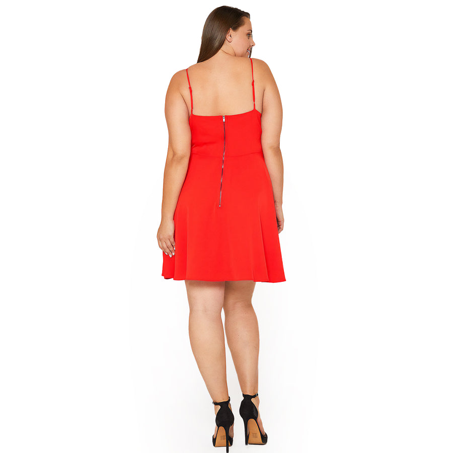 Zoom Women's Plus Size V-neck Spaghetti Strap Cocktail Dress in Poppy Red