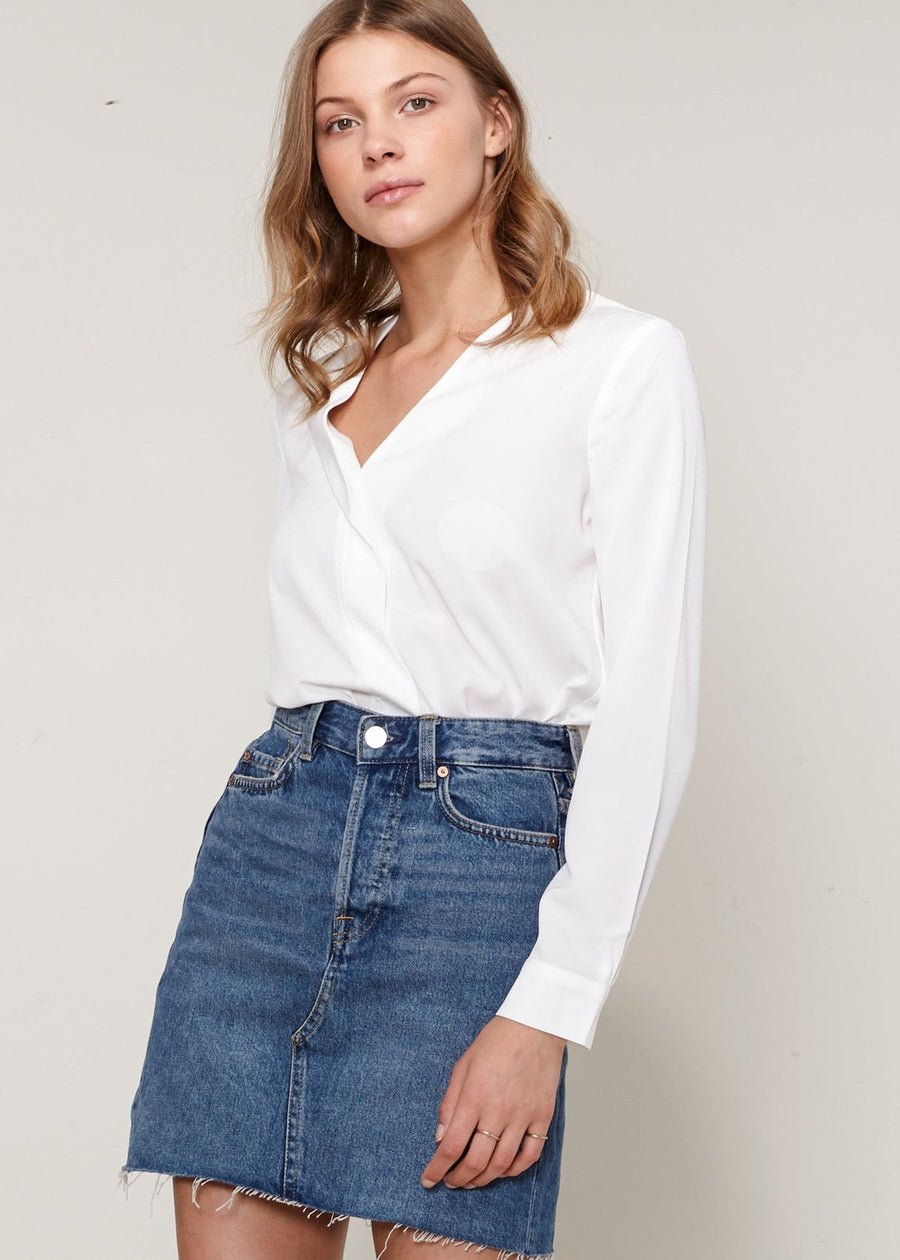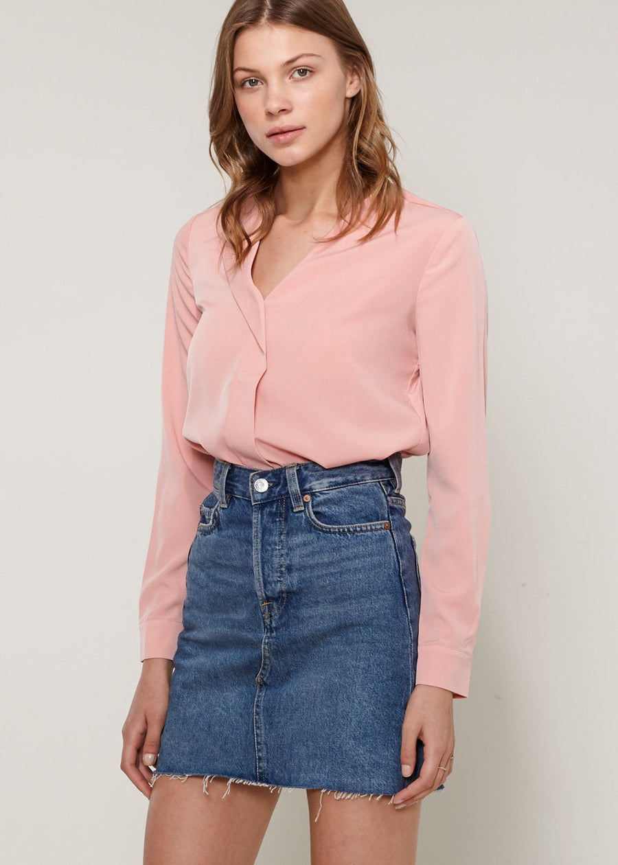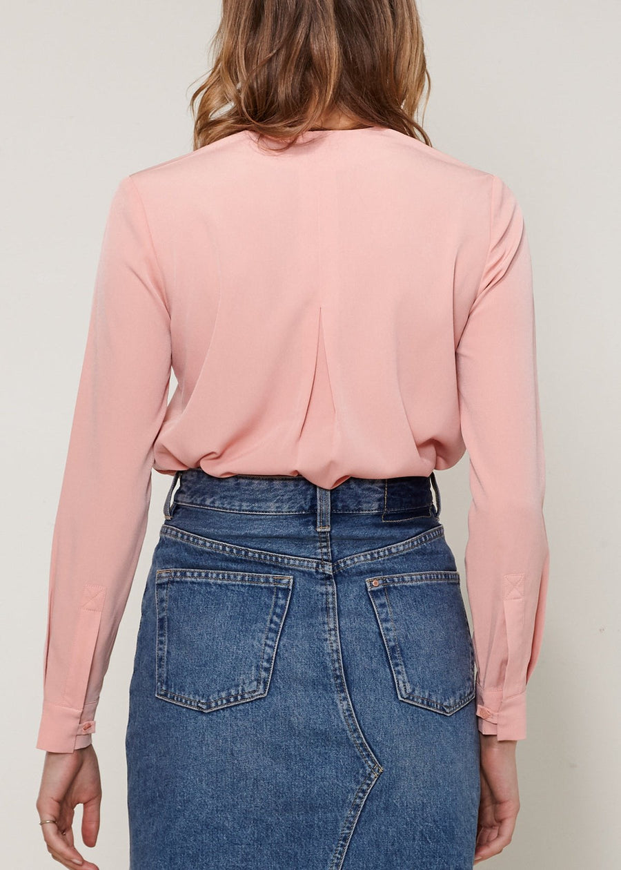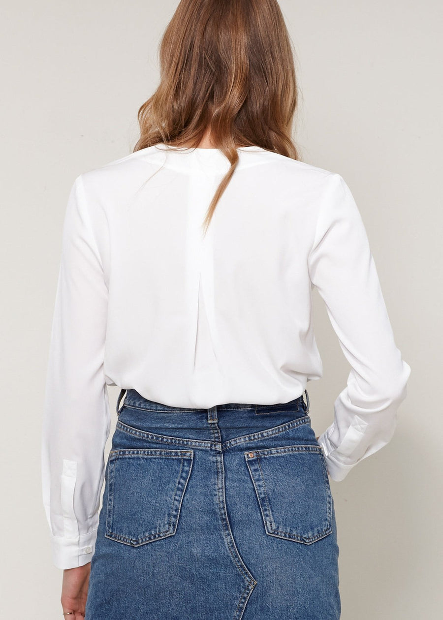 The perfect combination of elegance and luxury, this blouse will elevate your fashion game to new heights. Its v-neck design adds a touch of class while its premium quality ensures a comfortable and exclusive wearing experience.