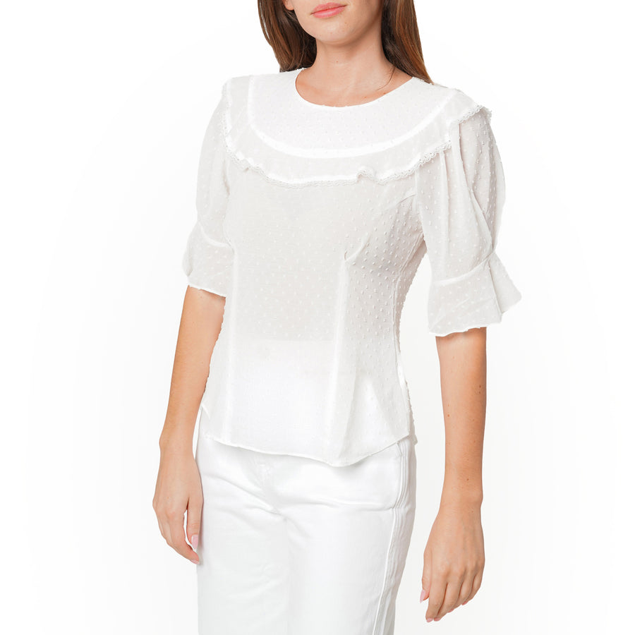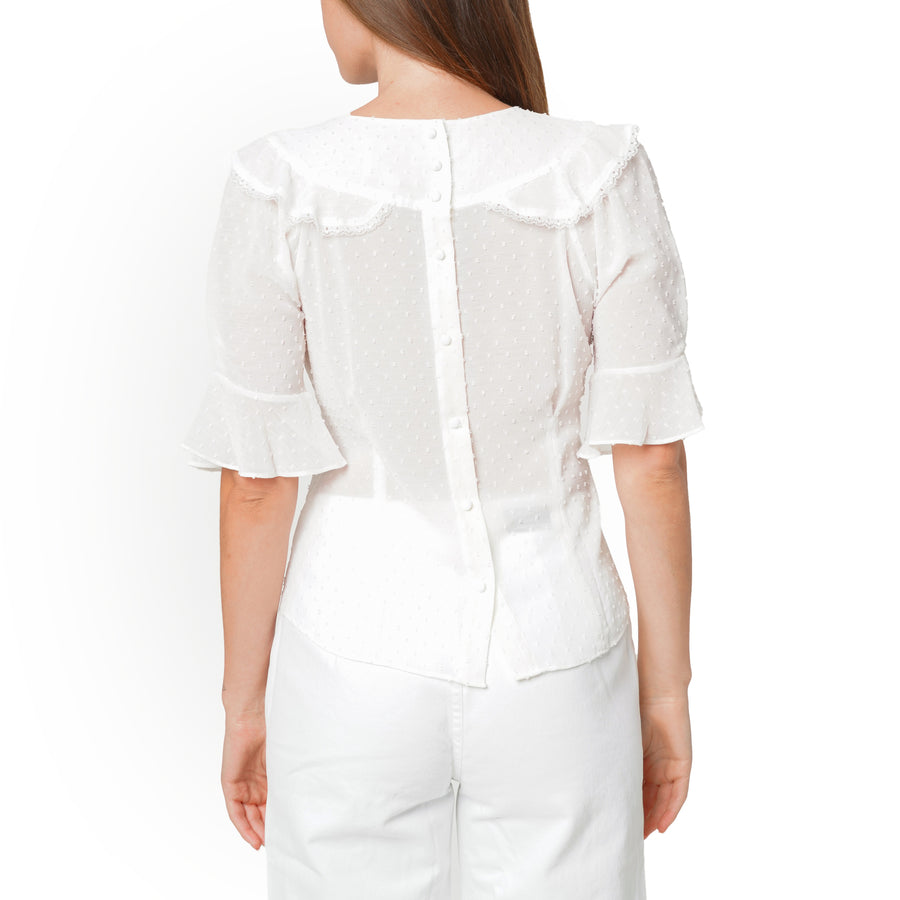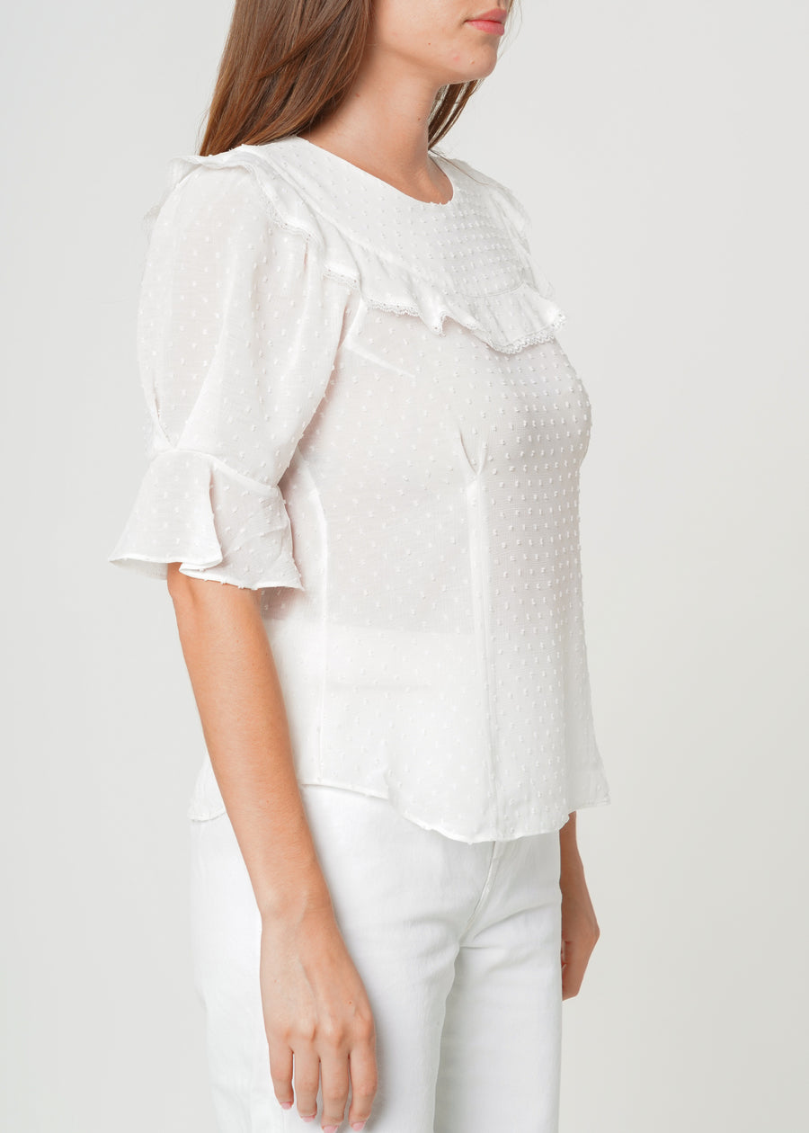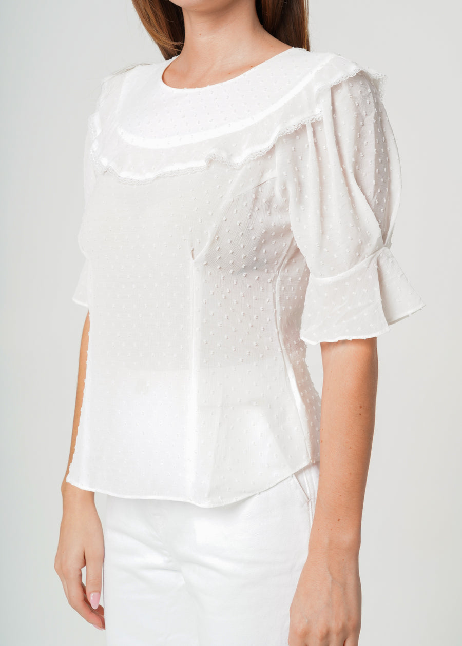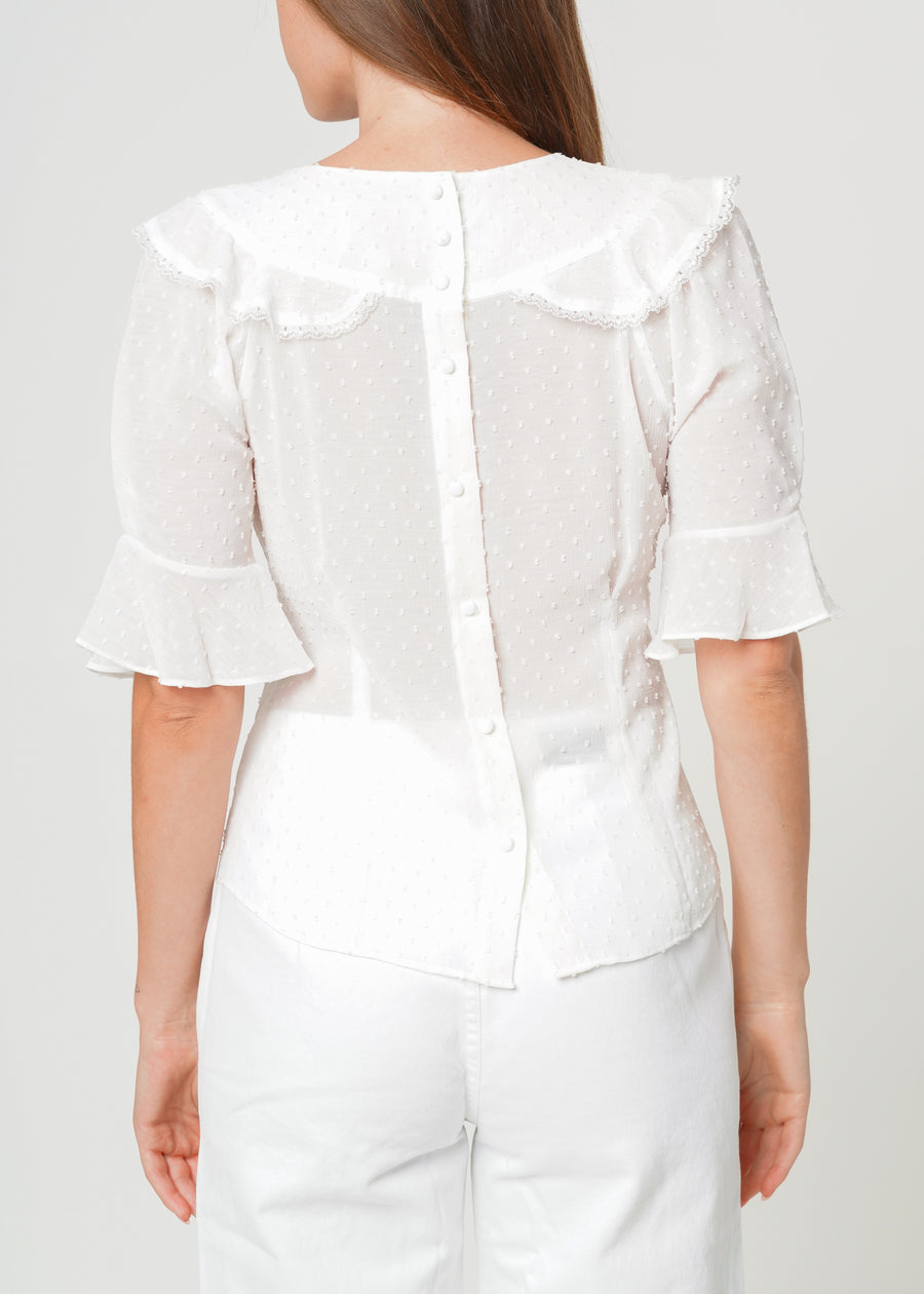Women's Swiss Dot Ruffle Sleeve Top in White